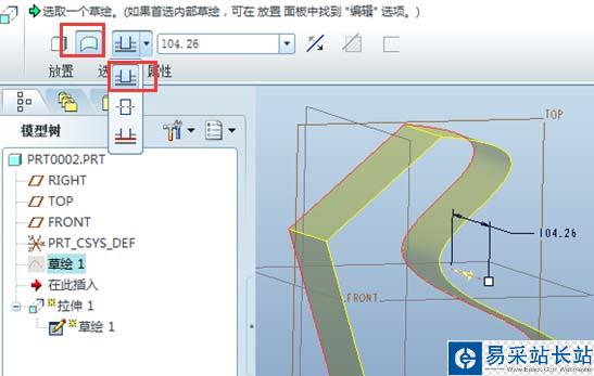 ProE中的曲面或封閉環(huán)進行拉伸,可形成曲面或?qū)嶓w,下面我們就來看看實例教程。