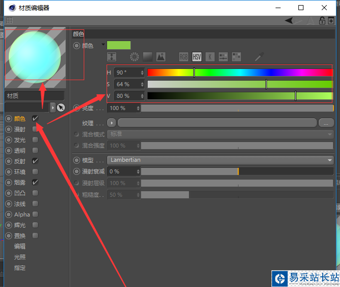 4、在顏色屬性中,選擇改變顏色,請注意預(yù)覽器的變化,在此說明一下,顏色屬性上的顏色是最底層,而煙霧屬性的顏色有優(yōu)先級;