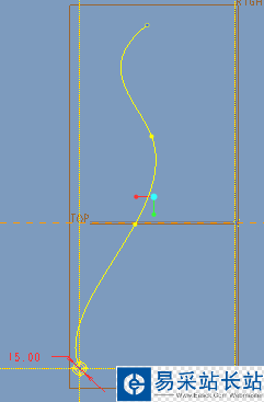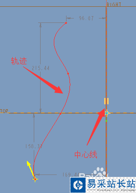 6、此時進(jìn)入草繪環(huán)境,繪制如下的掃描軌跡和中心線,完成后確認(rèn)并退出草繪環(huán)境。