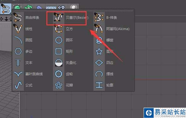 3、點擊自由樣條線選項,在其下拉列表里我們找到貝塞爾選項,如圖所示: