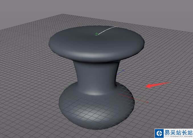7、點擊旋轉選項,然后將貝塞爾曲線拖放到旋轉器上我們就得到了三維模型了,如圖所示: