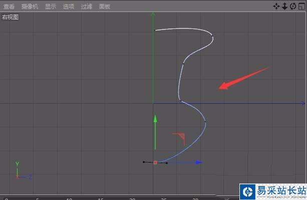 4、選擇貝塞爾選項,在右視圖里我們繪制一條貝塞爾曲線,如圖所示: