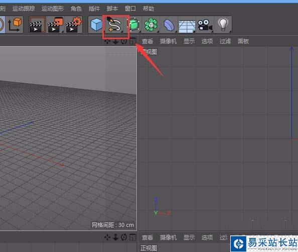 2、打開c4d之后在常用菜單那里找到自由樣條線選項,如圖所示: