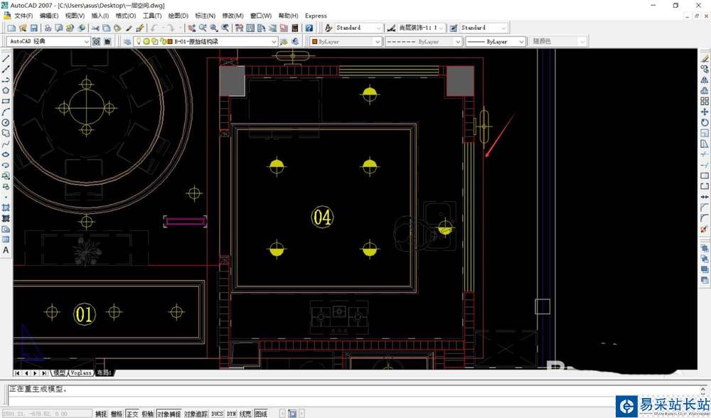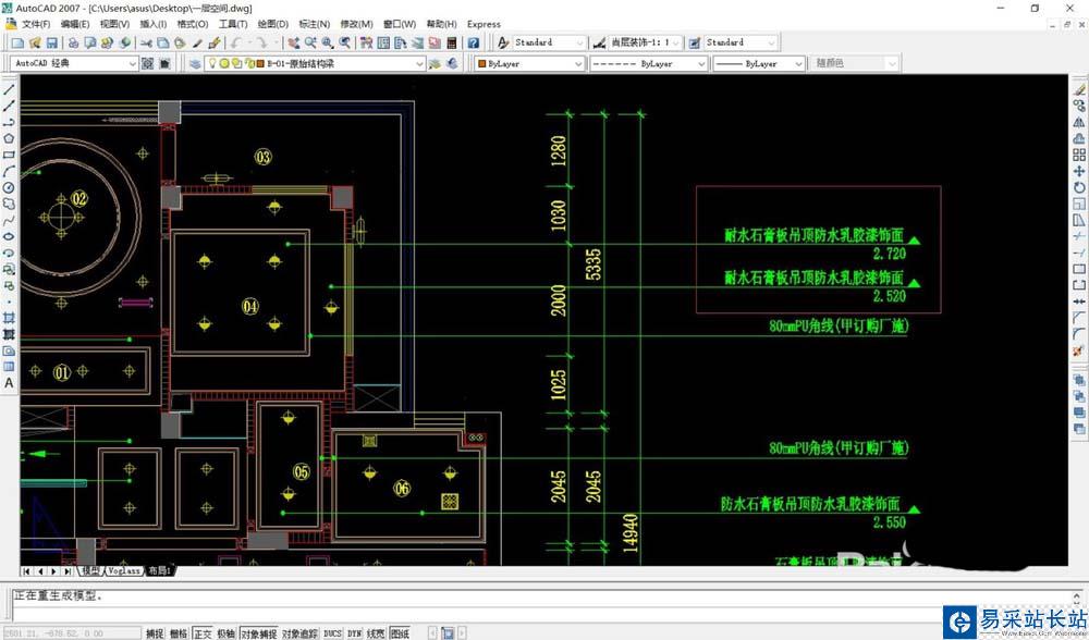 1、新建一個SU文件。打開CAD原文件的吊頂部分,舉個例子,我只講紅色圖框框出來的部分,學會了可以以此類推,很簡單哦。