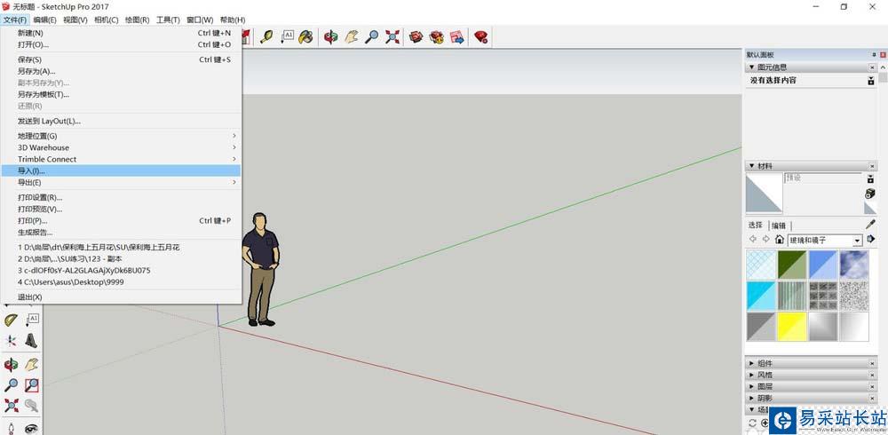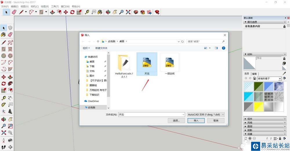 3、打開SU文件,“文件”—“導入”,在彈出的對話框中選桌面上的“天花”,“導入”。