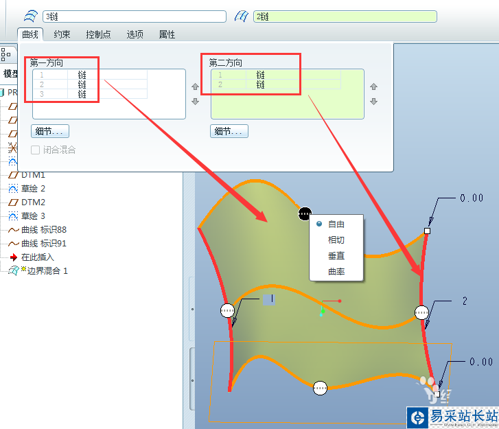 ProE怎么創建單向邊界混合曲面?