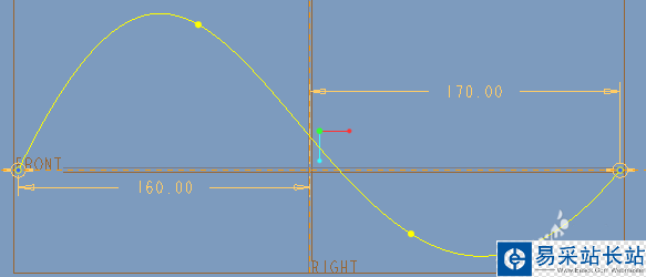 3、在DTM1面上隨意繪制一條曲線,尺寸可參考下圖,按√完成草繪。
