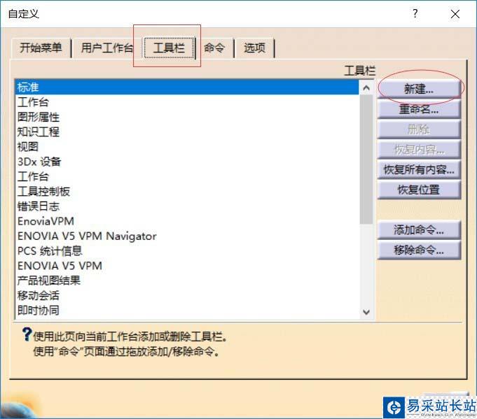 2、彈出對話框中分別點擊“工具欄”-“新建”按鈕;