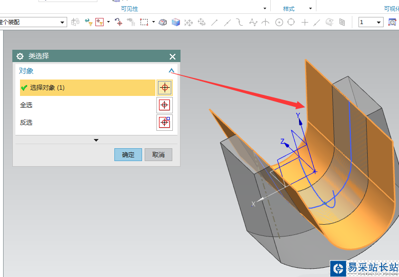 3、選擇下圖的曲面,(在對零件執行移動圖層時,盡量歸類,比如曲線、點、曲面、基準等,都各自放一層,方便管理)