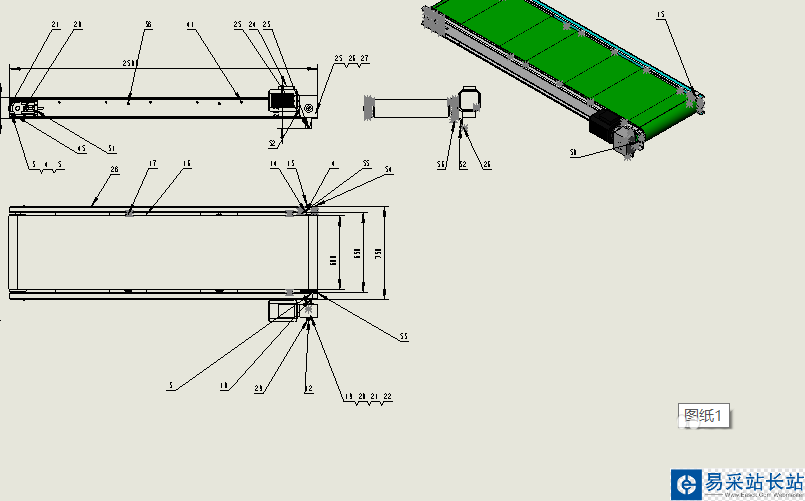 1、先打開需要制作明細表的工程圖,標注好大概尺寸和零件序號。
