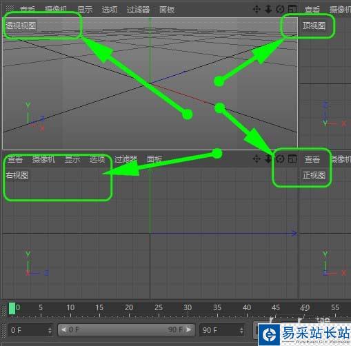 c4d背視圖底視圖左視圖怎么調出來?