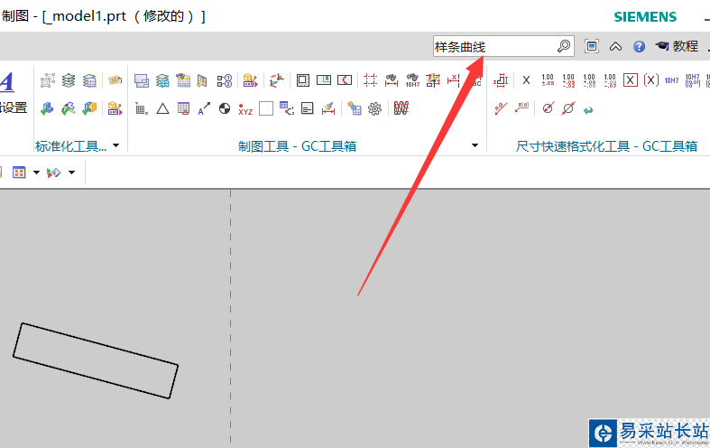 2、如果你的快捷欄沒有藝術樣條也沒有關系,我們點擊上面的命令搜索框。