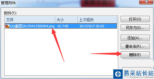 5、進入到了管理附件窗口當中,進行選中要刪除的附件,然后點擊刪除。