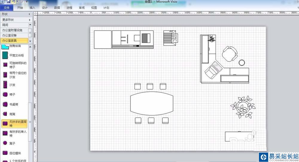 6、最后添加辦公室家具,入會議桌椅、沙發、文件柜等。