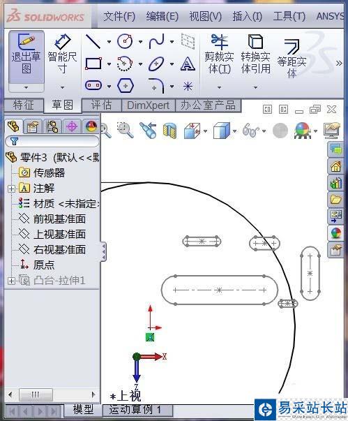 2、我這里要將全部腰形槽的草圖,復制到另外一個零件中,重新建立模型,首先,在編輯草圖模式下,如圖所示