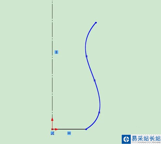 2、在草繪平面上畫出一條直線作為水瓶底部,然后再用樣條曲線畫出水瓶輪廓。