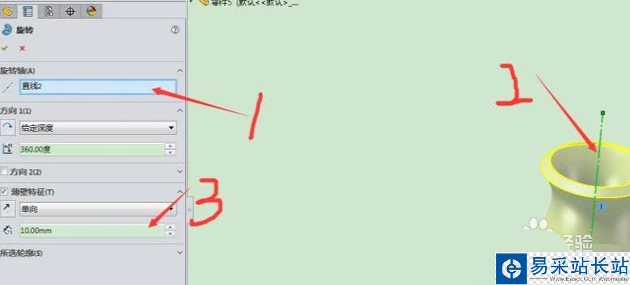 3、點到旋轉(zhuǎn)軸框-選擇草繪上的旋轉(zhuǎn)軸-更改壁厚