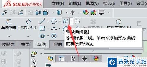 4、點草繪下方小三角選擇3D草繪命令-選擇樣條曲線-按空格選前正視面-畫出水瓶的把手的掃描輪廓。