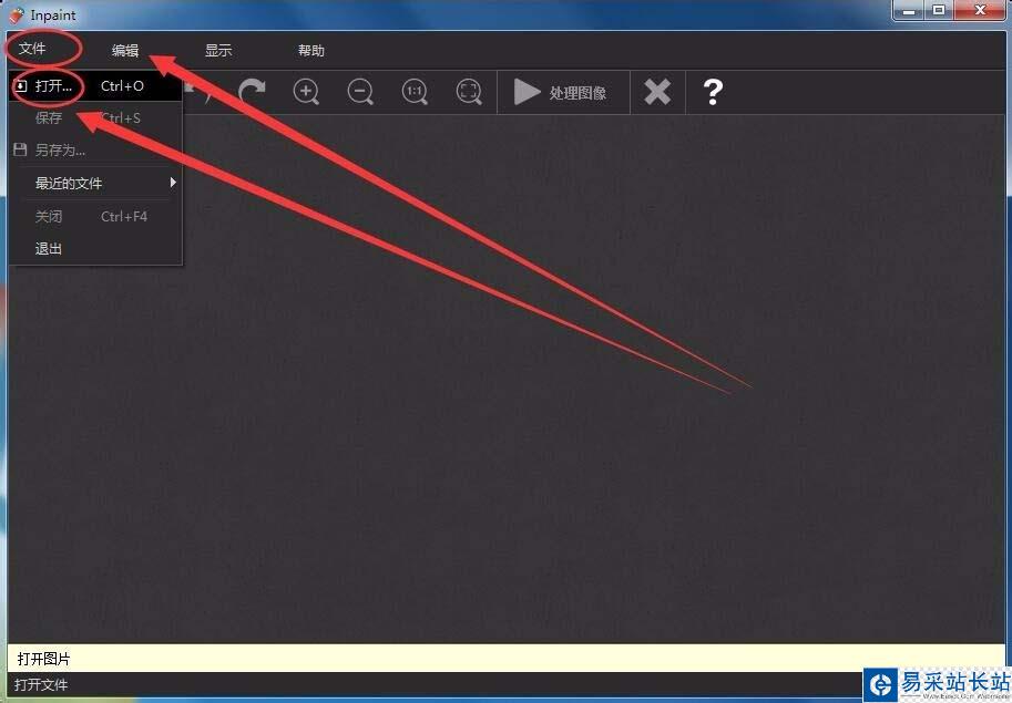 2、單擊文件---->打開,找到一張要去除水印的圖片。
