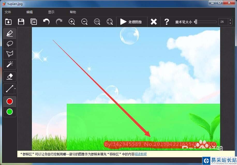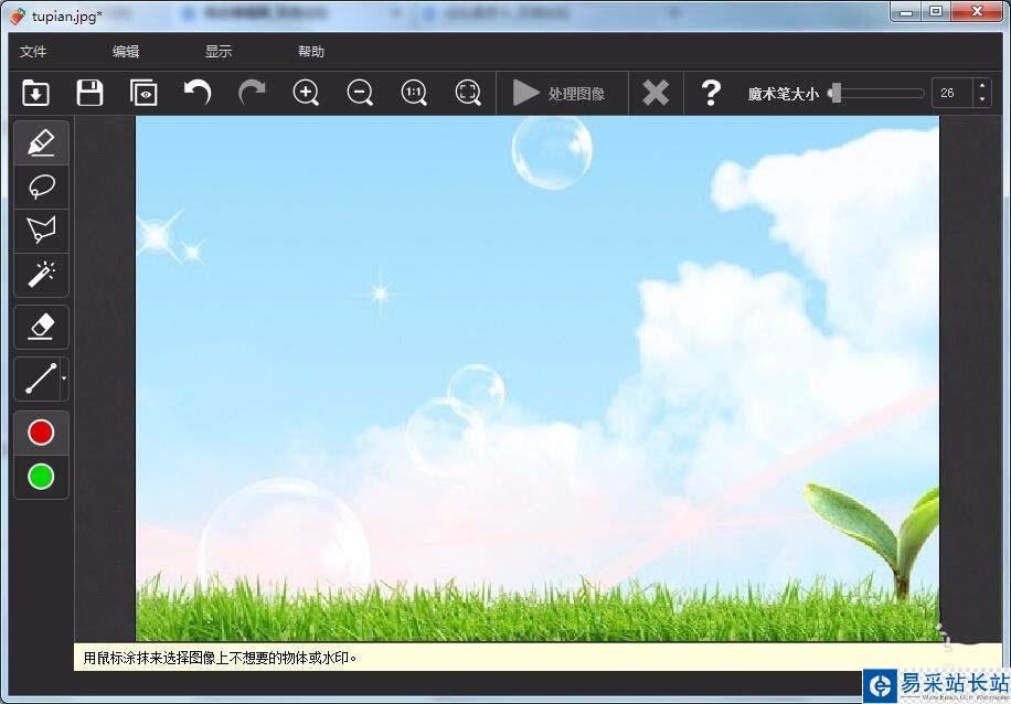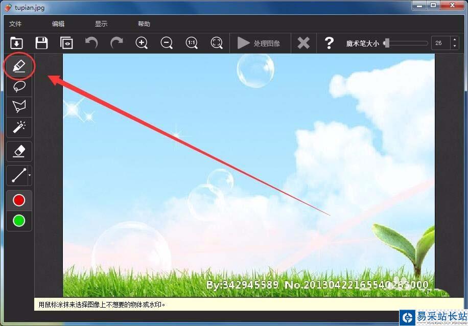 5、用魔術(shù)筆在水印上拖動(dòng),選擇要去除的水印。