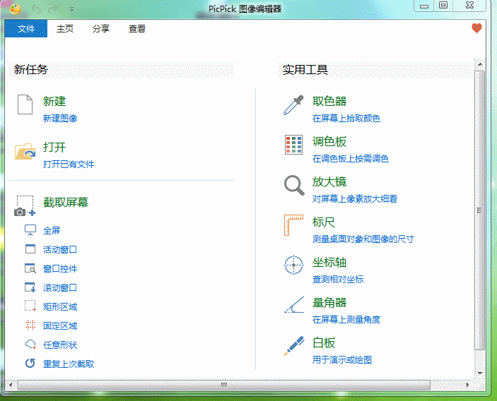 1、打開picpick,然后點擊左上角的文件,程序選項