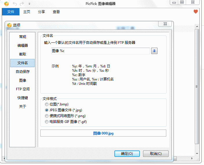 2、點擊 文件名,默認情況下,名稱是image %c,格式是png