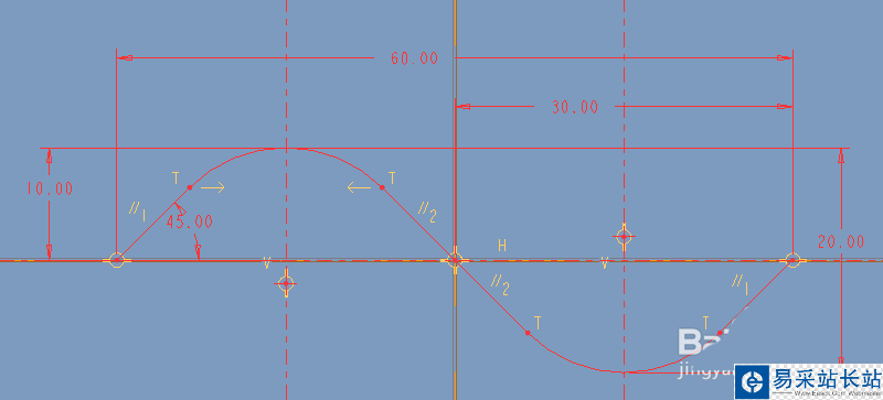 6、放置好的效果如下,可繼續通過尺寸驅動對波形進行調整。