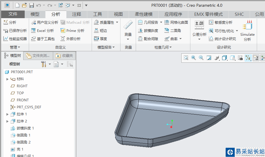 1、打開(kāi)creo4.0軟件。打開(kāi)產(chǎn)品模型。如下圖: