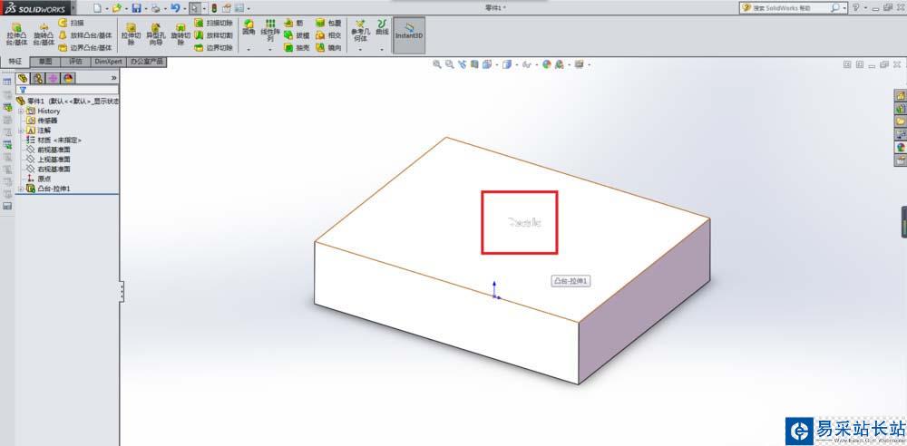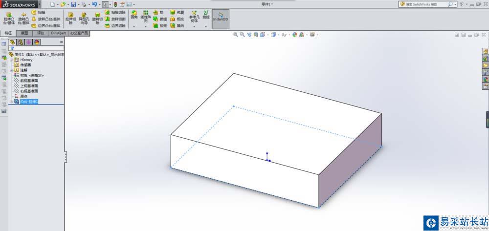 1、打開SolidWorks軟件,新建一個零件文件。造一個長方體作為演示所用。