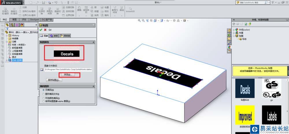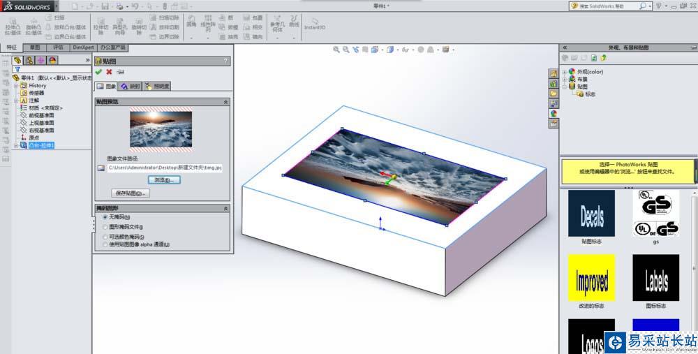 以上就是sw添加貼圖的教程,,希望大家喜歡,請繼續關注錯新站長站。