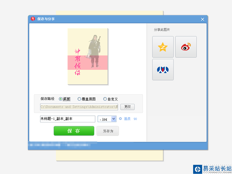 6、執行保存與分享命令,將文件保存為png格式,保存在桌面上即可。
