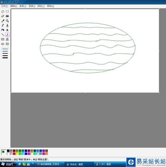 2、點(diǎn)擊曲線工具,畫曲線。這是西瓜的花紋。花紋較多,要有耐心