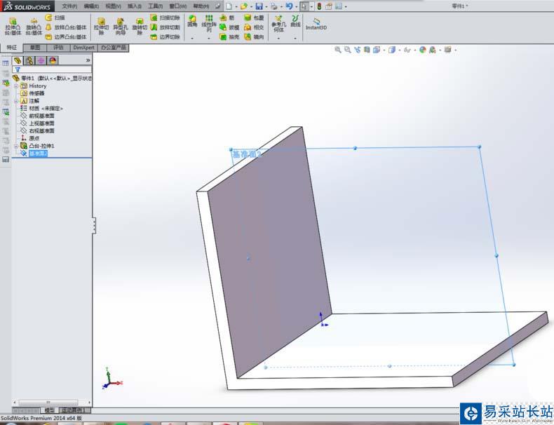 5、點√,一個新的基準面就創建完畢了。如下圖所示。解釋一下,下圖中的是基準面2,那是因為筆者操作太快,創建基準面1的時候忘了截圖,所以重新來過一遍,就成了基準面2了。