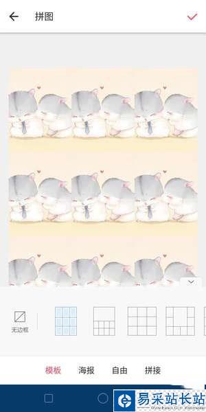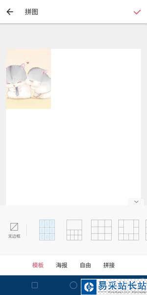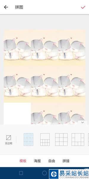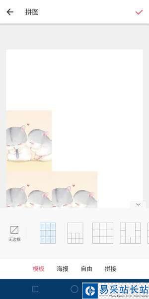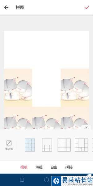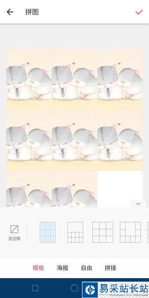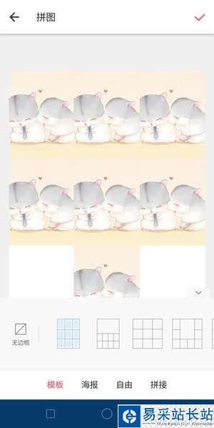 在美圖秀秀首頁點擊【拼圖】,上傳9張圖片,拼圖排在第6、8、9位置,其他位置放白圖,然后點擊【開始拼圖】這里記得選擇【無邊框】的【九宮格】模板,完成后點擊右上角的【√】即可保存
