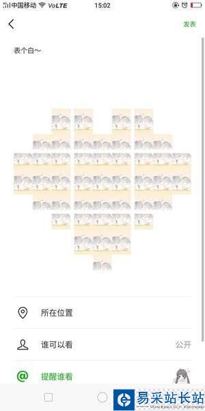 以上所述是小編給大家介紹的在微信朋友圈發愛心九宮格圖片的方法,希望對大家有所幫助,如果大家有任何疑問請給我留言,小編會及時回復大家的。在此也非常感謝大家對錯新站長站網站的支持!