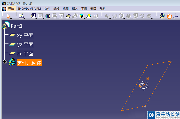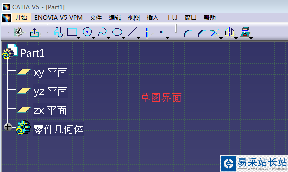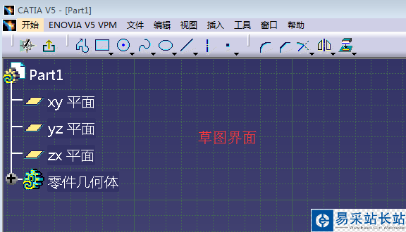 1、打開CATIA,進入建模操作界面,然后依據我們之前講述的方法進入草圖操作界面