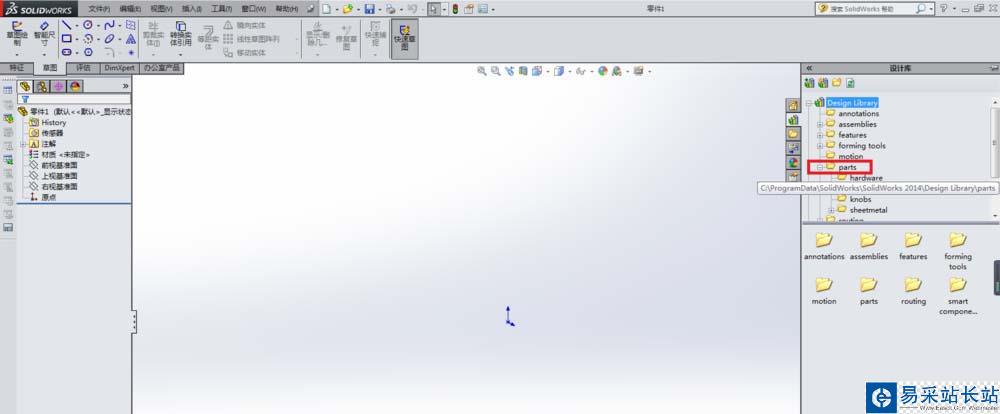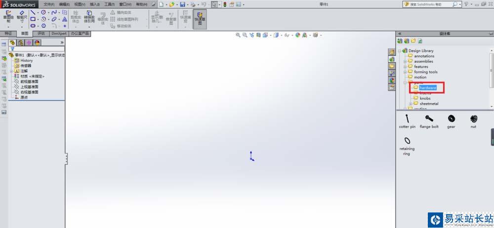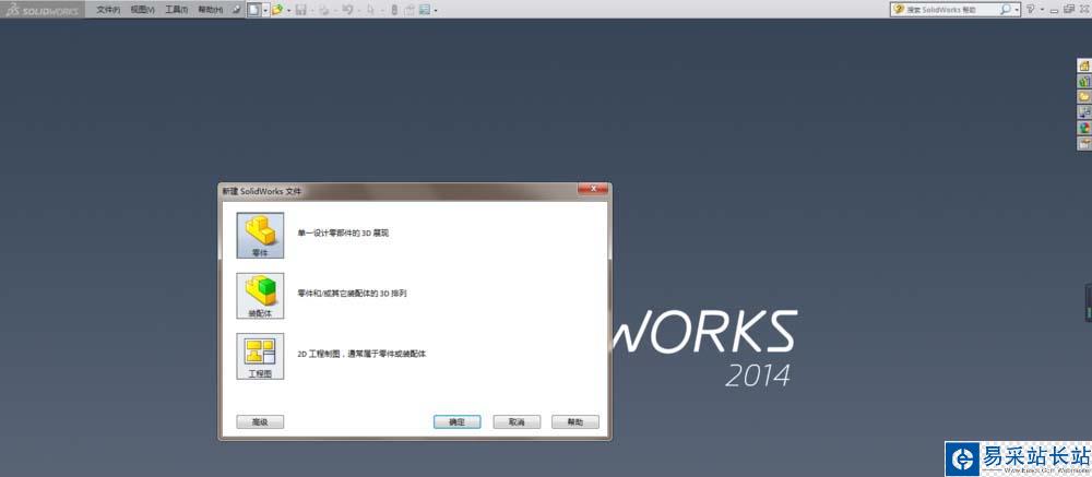 1、打開SolidWorks軟件,新建一個零件文件。