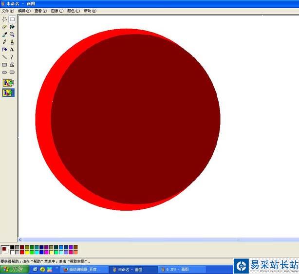 7、把背景填充回白色,把剛剛畫出的任意顏色圓用選擇工具選擇拖到紅圓內(nèi),也填充白色。(我的任意顏色圓不合適,慢慢調(diào)整就好)。