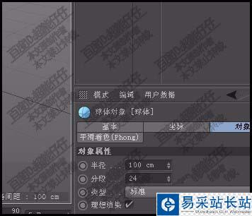 3、接著再創建一個球體基礎物體。來到球體屬性窗口