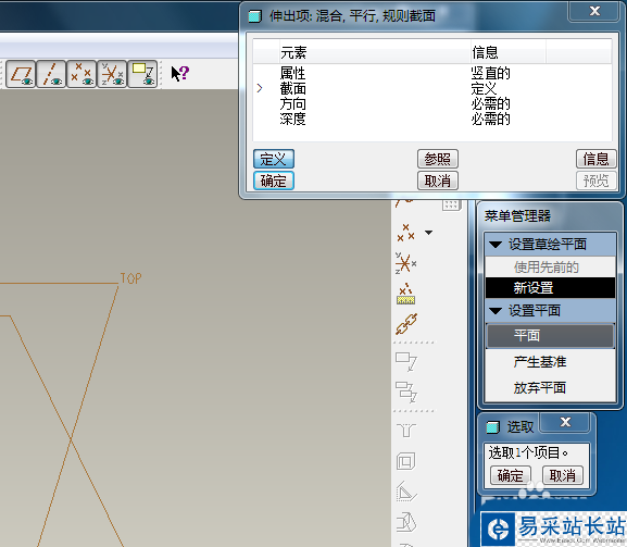 2、依次點擊“插入/混合/伸出項”,繪制基礎圖形