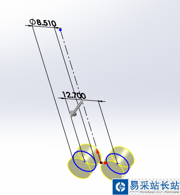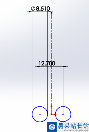 1、直接進(jìn)入正題!首先在草圖上畫出兩個大小相同的圓,給出必要的尺寸。拉伸得到滾子。