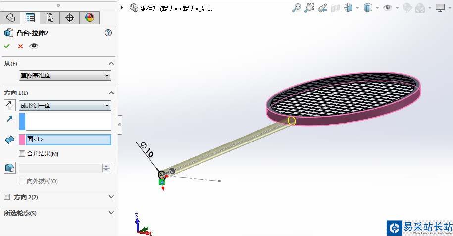 2、使用兩邊對稱的拉伸凸臺命令,得到羽毛球框架的雛形。