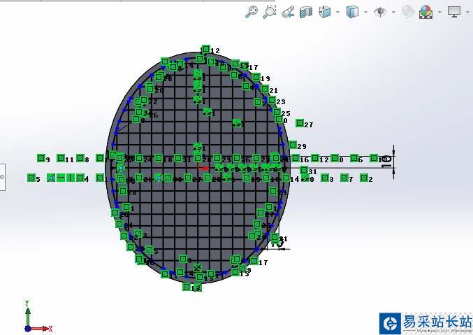 3、在羽毛球拍俯視面上繪制如下草圖,使用線性陣列命令得到。