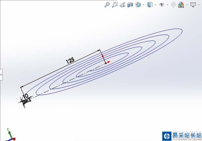 3、在渦狀線起點垂直面(右視圖)繪制蚊香截面的草圖。