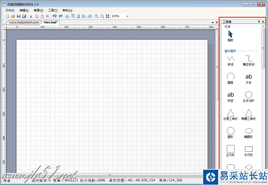 2、在軟件右側的“工具箱”中,選擇所需的素材,繪制流程圖。