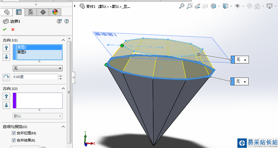 5、使用邊界凸臺(tái)命令,對(duì)鉆石上半部分建模。