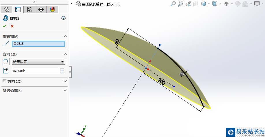 3、通過旋轉凸臺命令,進行建模,得到盾牌的基本形狀。