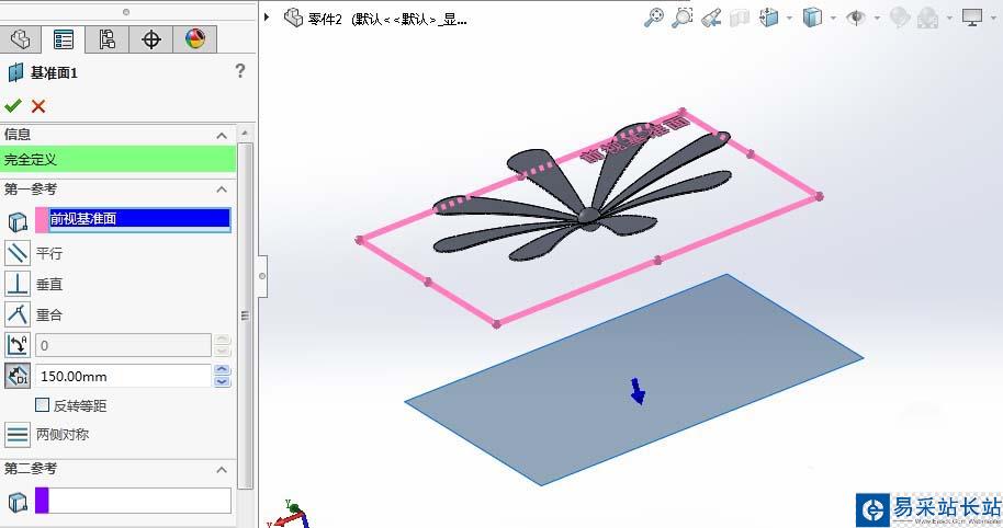 9、建立如下的基準面,準備繪制花梗的草圖。