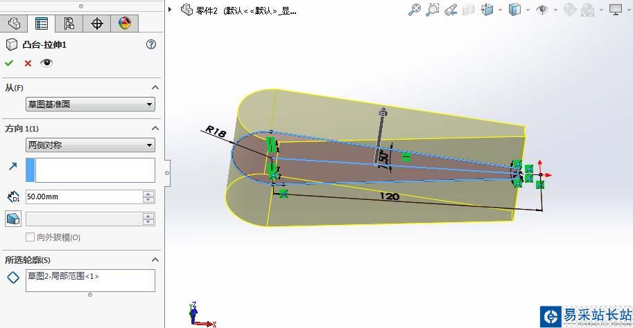 4、使用拉伸切除命令,注意這里選擇了反側切除,也是就僅僅保留草圖輪廓內的實體。