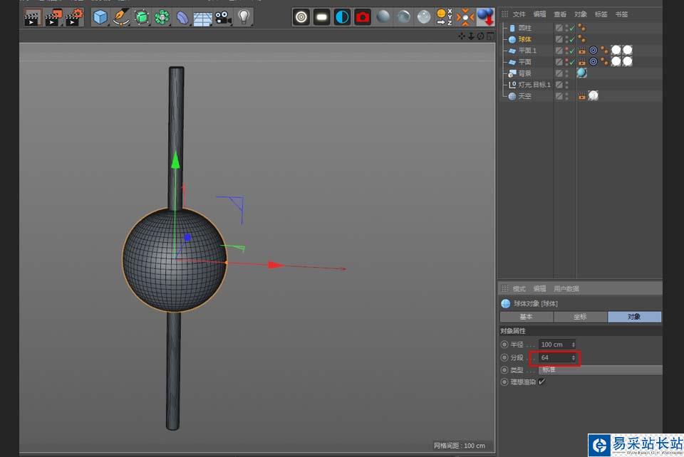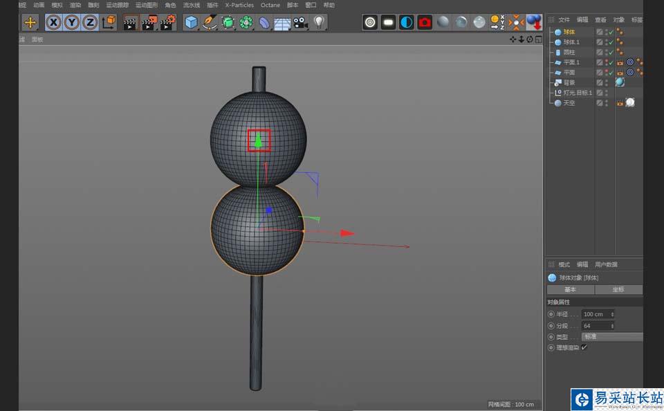 按住向上的箭頭拖動球體到如下圖所示位置。